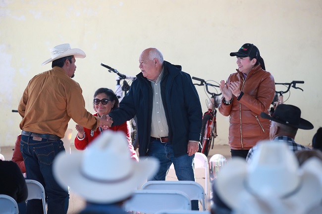 El Mandatario supervisó los avances en las obras de construcción y equipamiento de la sala de matanza y producción de cabrito, donde se han invertido 3.8 millones de pesos. Es un proyecto estratégico, participan la SEPADA, SEDIF y los productores locales, e incluye un corral de manejo caprino, suministro e instalación de cuarto frío, refrigeradores solares, molino forrajero, sementales, adecuaciones de mejora para su operación, así como servicio profesional de capacitación, asistencia técnica y extensionismo rural. Esta sala de matanza y producción de cabrito realizará un adecuado manejo del sacrificio, inocuo y estrictamente apegado a las normas oficiales, permitiendo el crecimiento económico para la comunidad y la región, propiciando bienestar y desarrollo