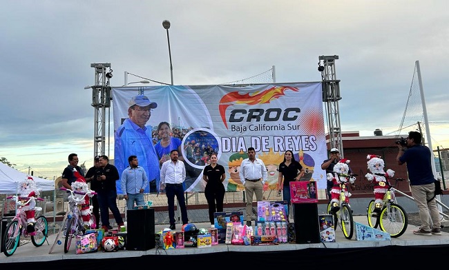 Convocando a decenas de niñas y niños, el XIV Ayuntamiento de Los Cabos que preside Oscar Leggs Castro, en coordinación con la Confederación Revolucionaria de Obreros y Campesinos (CROC), celebró con familias de la colonia Lomas del Sol, en Cabo San Lucas, el tradicional Día de Reyes.