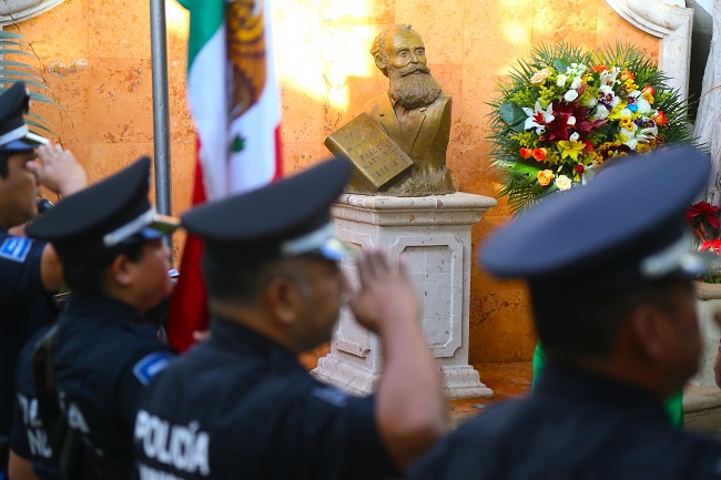 “La Dirección Municipal de Educación contribuye a que la institucionalidad que se da por parte del Ayuntamiento para las escuelas se siga manteniendo. Hoy conmemoramos el aniversario luctuoso del profesor Pablo L. Martínez, un hombre comprometido con la educación, el trabajo de investigación y el periodismo, esta es la primera ceremonia cívica que estamos conmemorando de acuerdo a lo que marca el calendario oficial”, expresó Servín Meza.