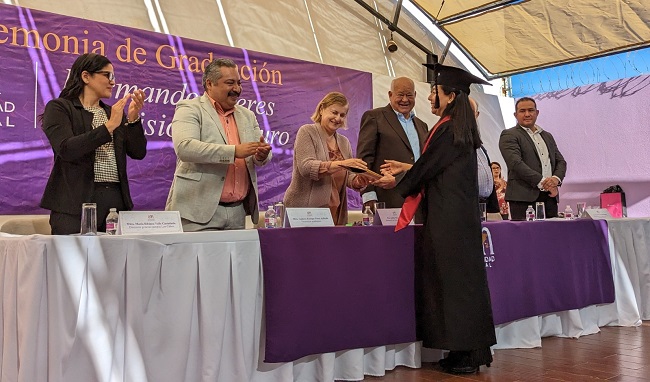 Por su parte, Bélgica Plascencia Arias en representación de los egresados de posgrados agradeció y reconoció a su alma máter, los retos enfrentados por su generación, mismas que les enseñaron a ser profesionistas más humanos, conscientes de las necesidades y virtudes de la sociedad que los rodea.