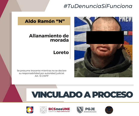 El pasado viernes 12 del mes en curso en un domicilio que se ubica en la colonia Miramar, en Loreto, sin autorización de quien pudiera otorgarla, Aldo Ramón “N” se introdujo a una casa habitación, por lo que ahora enfrenta los cargos por delitos de allanamiento de morada, luego que la Procuraduría General de Justicia del Estado (PGJE) proporcionó datos de prueba que lo relacionan con el hecho.