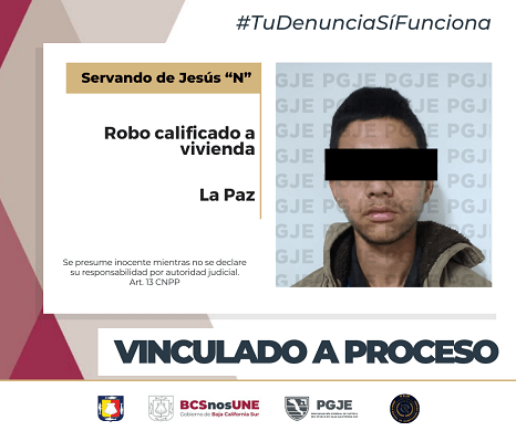 En la audiencia celebrada el viernes 12 de enero del año en curso para control de detención, la Unidad Especializada para la Atención de Personas Detenidas, obtuvo del Juez de Control, vinculación a proceso de Servando de Jesús “N”, imputado por el delito de robo calificado a vivienda.