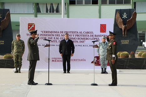 El secretario General de Gobierno, José Saúl González Núñez, asistió en representación del gobernador Víctor Manuel Castro Cosío, a la ceremonia de toma de posesión del mando y protesta de bandera del nuevo comandante del 49/o. Batallón de Infantería, Guillermo Romero López, acto que encabezó el comandante de la Tercera Zona Militar, Ignacio Murillo Rodríguez.