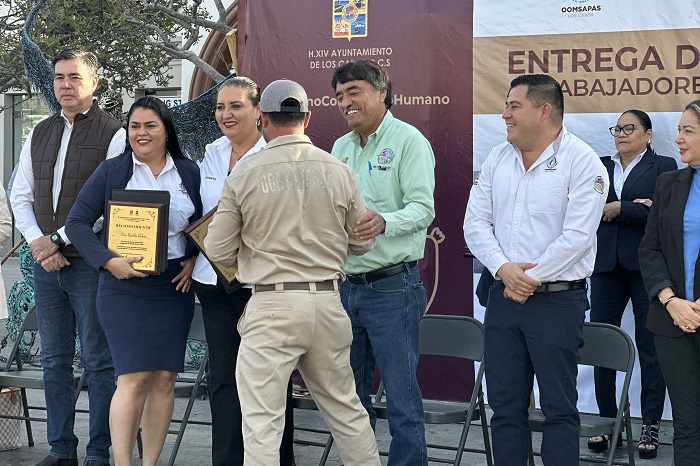 Por su parte, el director general del Organismo Operador Municipal del Sistema de Agua Potable, Alcantarillado y Saneamiento de Los Cabos, Ismael Rodríguez Piña refirió : “Hoy esta entrega estará sumando en total 75 bases al Organismo Operador que cuenta con el personal de más antigüedad hasta el 2008; es el corte que tenemos en este conjunto de bloque de entrega de bases en el Organismo, y con ello estamos dándole el reconocimiento a los compañeros, a su familia, y queda la muestra de un Gobierno con sentido humano reflejado en reconocer lo más valioso que tiene este Organismo que es su personal”.