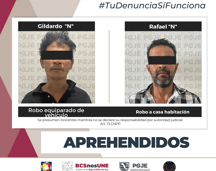 Las órdenes de aprehensión se obtuvieron como resultado de la integración de las respectivas carpetsa de investigación a cargo de personal de la Subprocuraduría de Procedimientos Penales Zona Sur, en San José del Cabo; en la primera el proceso que inició en el 2023 derivado de la denuncia interpuesta por la víctima por el delito de robo equiparado de vehículo de motor, en contra de Gildardo “N” de 28 años de edad y de apodo “El chino ántrax”, quien fue detenido el martes 30 del mes en curso en la colonia Guaymitas, en San José del Cabo.