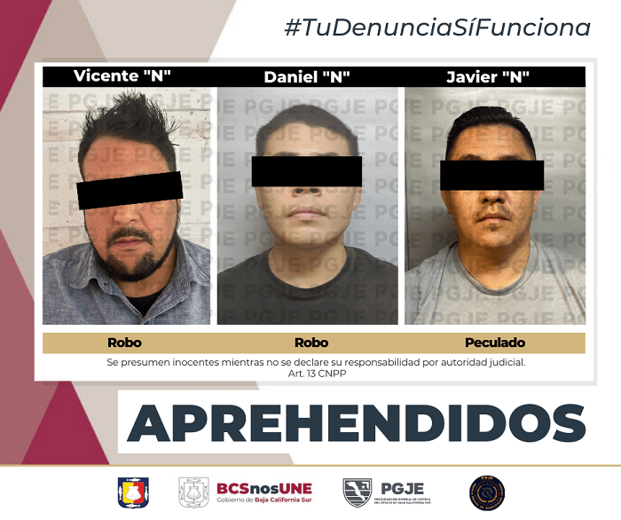 En seguimiento a investigaciones en torno a denuncias por diversos delitos, agentes de investigación de la Procuraduría General de Justicia del Estado (PGJE), realizaron operativos, mediante los cuales se aprehendió a tres personas del sexo masculino.