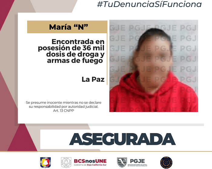 Un total de 36 mil 478 dosis de droga aseguraron la mañana del viernes 09 de febrero agentes de investigación de la Procuraduría General de Justicia del Estado (PGJE) de Baja California Sur, mediante el cumplimiento de una orden de cateo en un domicilio que se ubica en la colonia Márquez de León en la ciudad de La Paz.