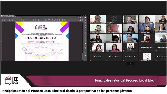 Un grupo de estudiantes y egresados de la Universidad Autónoma de Baja California Sur (UABCS) participó en un foro juvenil sobre los principales retos del Proceso Local, convocado por el Instituto Estatal Electoral y la Comisión de Igualdad de Género y no Discriminación.