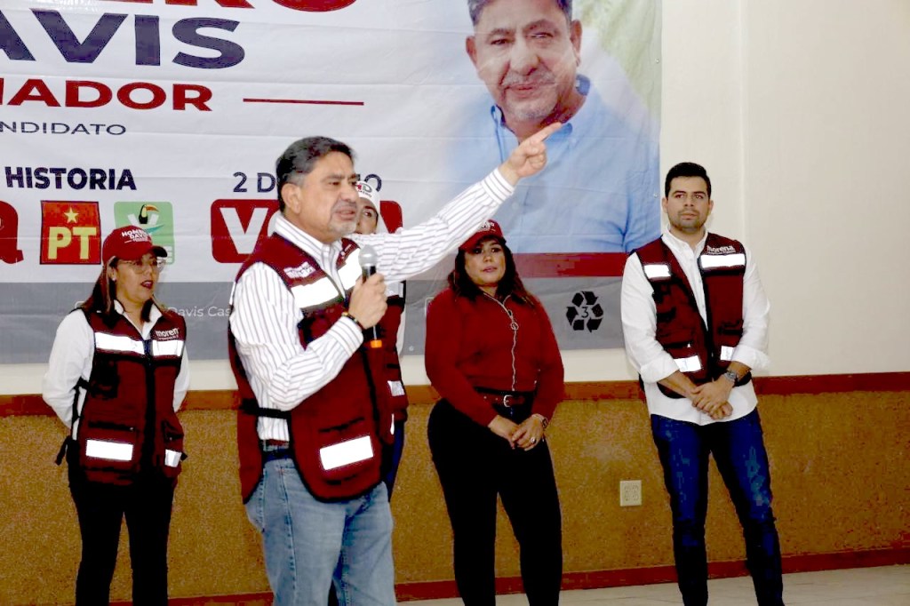 Davis Castro estuvo acompañado por la candidata suplente, Eda Palacios, y el candidato a diputado federal Manuel Cota Cárdenas con quienes, dijo, “vamos a hacer un gran equipo, vamos a construir y trabajar muy duro por la consolidación de la cuarta transformación, vamos a hacer historia en este país con la primera presidenta de México, la Doctora Claudia Sheinbaum”.