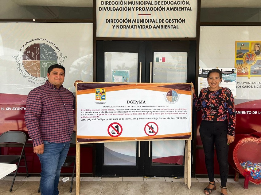 De acuerdo al Reglamento Municipal de Equilibrio Ecológico y Protección del Ambiente del Municipio de Los Cabos, que corresponde a la Dirección Municipal de Gestión y Normatividad Ambiental, se sancionará a las personas que se les sorprenda tirando o quemando basura con una multa de 100 a 20 mil UMAS, pena de tres meses a tres años de prisión y multa por el equivalente de cien a mil días de multa.