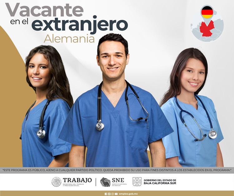 El Servicio Nacional de Empleo de Baja California Sur (SNE-BCS) da a conocer a todas aquellas personas que buscan oportunidades de trabajo en el extranjero, la disponibilidad de 60 plazas para trabajar como enfermero o enfermera en Alemania.