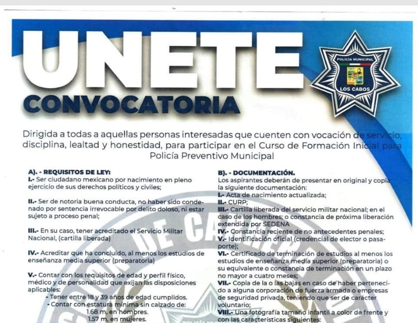 Con la finalidad de fortalecer la institución y seguir estableciendo el orden y la paz social, la Dirección General de Seguridad Pública, Policía Preventiva y Tránsito Municipal por medio de la Dirección de Carrera Policial, invita a todas las personas interesadas a integrarse a la corporación como policía preventivo.