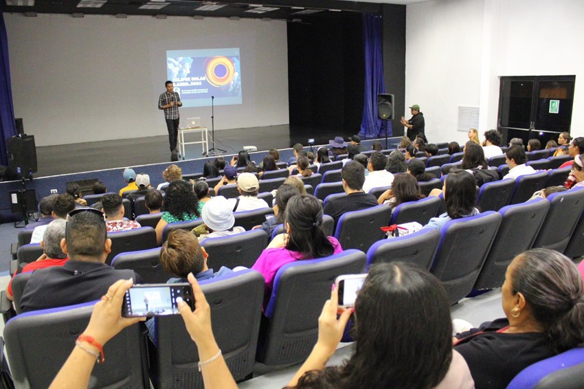 En punto de las 9:30 de la mañana, el biólogo de la UNAM Hugo Abraham Valdez Saucedo explicó de manera breve y puntual la definición de eclipses, su naturaleza, sus tipos, afectaciones, mitos y realidades, además de dar a conocer como hacer una observación segura en un eclipse parcial que en Los Cabos fue del 92% de su totalidad, lo que provocó una oscurecimiento moderado.