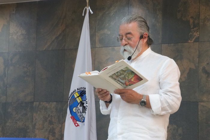 Los días 11 y 12 de abril, la Universidad Autónoma de Baja California Sur (UABCS) tuvo el honor de recibir al distinguido poeta mexicano Efraín Bartolomé en dos eventos especiales, en los cuales ofreció un recital poético y participó en un enriquecedor diálogo con la comunidad universitaria sobre su obra y experiencias creativas.