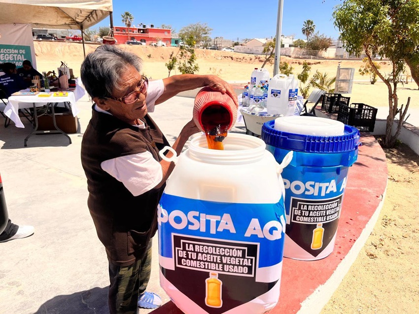 Habitantes de La Ribera, Santiago, San José del Cabo y Cabo San Lucas, acudieron a los puntos de recolección que fueron habilitados para depositar sus botellas con «aceite vegetal comestible usado”, a fin de evitar que ese aceite se arroje a la alcantarilla y que a su vez, pueda ser reutilizado para la elaboración de jabones artesanales.