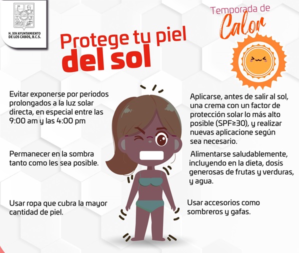 El Gobierno de Los Cabos, a través de la Dirección Municipal de Salud, reitera la importancia de tomar medidas preventivas y de cuidado ante la ola de calor que está afectando la región, temperaturas que pueden representar un riesgo para la salud, especialmente para los grupos más vulnerables, como la niñez y las personas adultas mayores, así como con enfermedades crónicas.