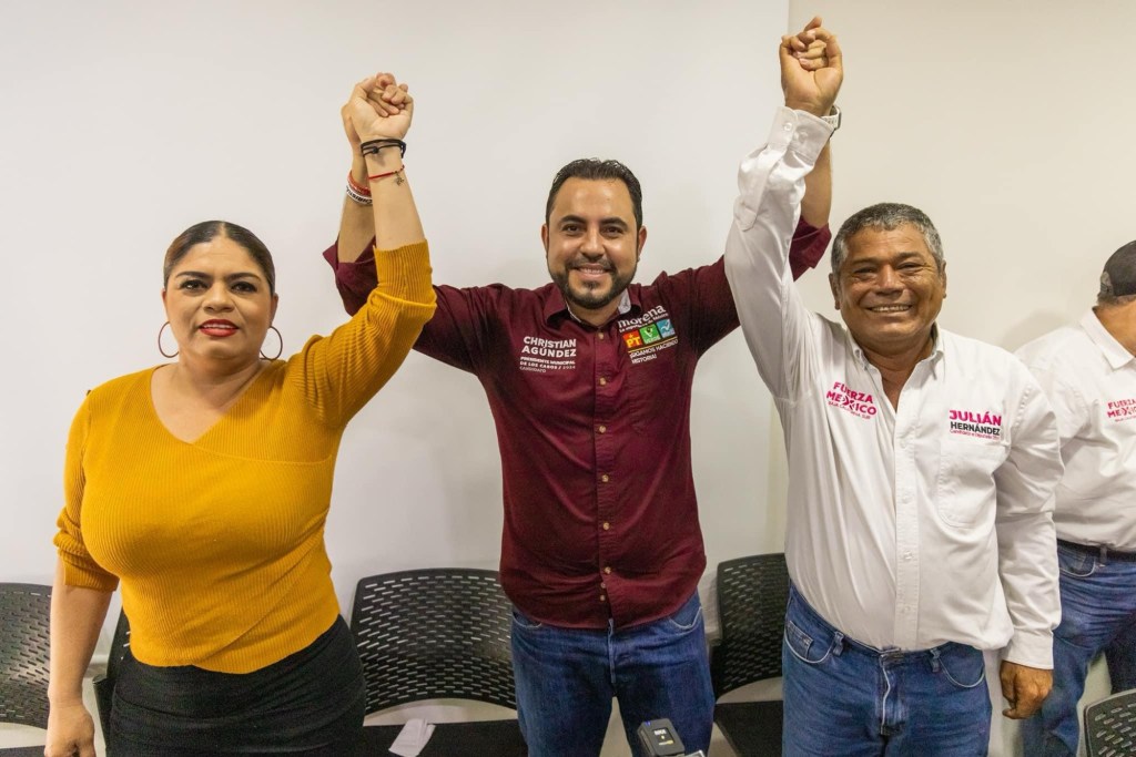 Los Cabos, BCS.- El Candidato a Presidente Municipal de Los Cabos por la Alianza “Sigamos Haciendo Historia en BCS” Christian Agúndez Gómez, recibió el respaldo del Candidato a Diputado Local de Fuerza por México, Julián Hernández y de su suplente Hipólito Medina Cervantes.