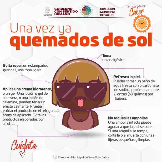 Finalmente, se recuerda a todas las personas residentes y visitantes de Los Cabos la importancia de proteger la piel del sol y tomar medidas preventivas para evitar quemaduras solares y otros daños relacionados con la exposición solar.