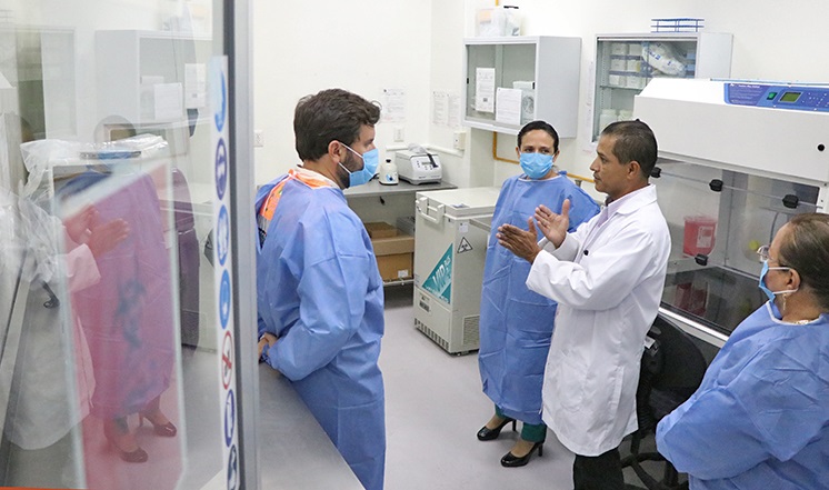 Acompañada por la directora del LESP, Maricela Zaragoza Núñez, Flores Aldape mostró al comisionado federal las áreas donde se procesan las muestras tomadas a pacientes para identificar virus o bacterias, así como los espacios donde se analizan las muestras de agua de mar y de moluscos bivalvos para conocer su condición microbiológica y determinar la presencia de tóxinas marinas, a fin de reducir riesgos para la salud de la población.