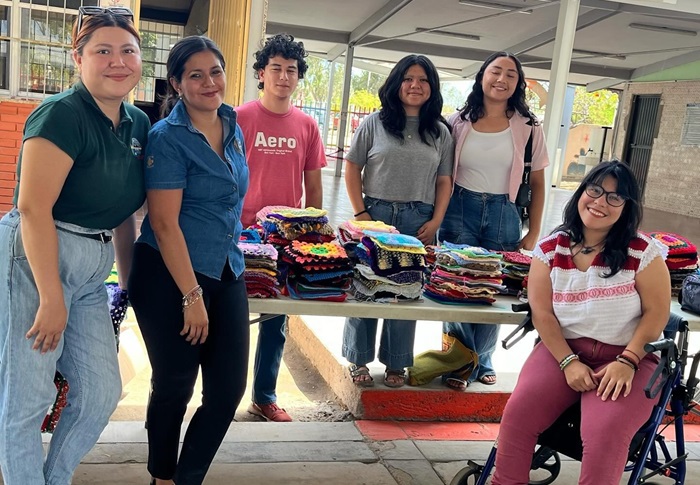 De acuerdo con la Dra. Ariadna Ávila García, responsable de Coordinación de Responsabilidad Social Universitaria, este año la comunidad universitaria logró donar 462 cuadritos tejidos de 20×20 centímetros al Centro de Atención Múltiple (CAM).