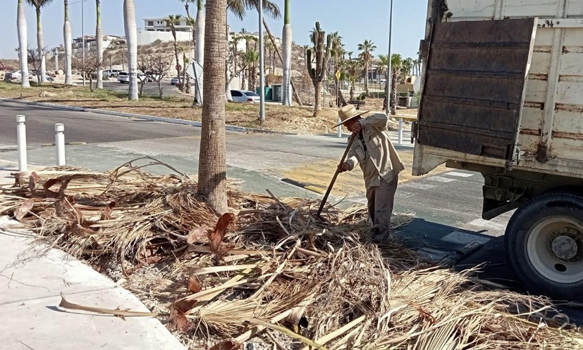 La Dirección General de Servicios Públicos, a través del personal de la Coordinación de Aseo y Limpia, llevó a cabo el retiro de hojas de palma, luego de la poda de dicha vegetación en los camellones de la zona hotelera de San José del Cabo.