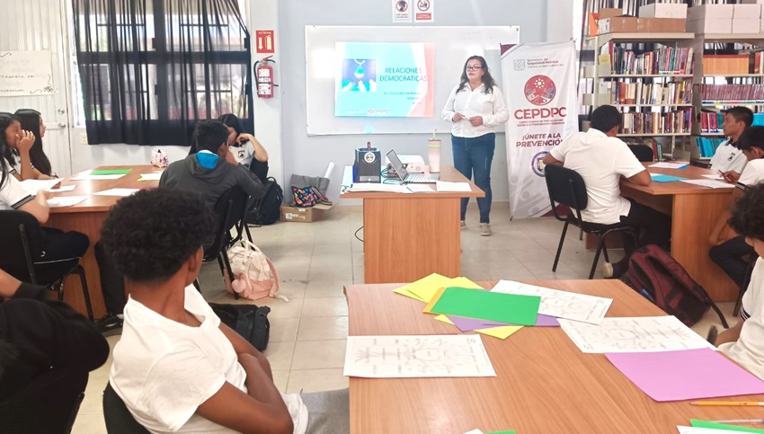 La Secretaría de Seguridad Pública del Estado (SSPE) a través del Centro Estatal de Prevención del Delito con Participación Ciudadana (CEPDPC), llevó a cabo una serie de pláticas a las y los alumnos de la secundaria número 18 de la colonia Cangrejos en Cabo San Lucas, como parte de las labores de prevención y de consolidación del respeto a los derechos humanos, informó la titular del centro preventivo, Eréndira Cárdenas Castro.