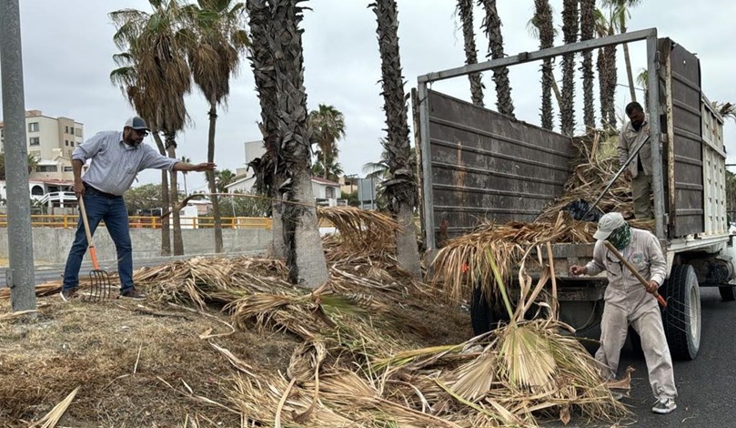 Asimismo, destacó que estas actividades incluyen el levantamiento de basura, deshierbe, barrido manual, así como el mantenimiento continuo de camellones y el retiro de hojas de las palmeras.