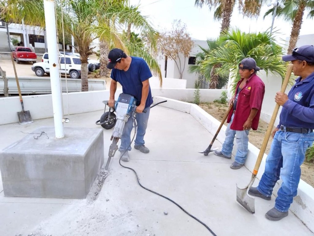 De igual manera, se realizó la demolición de la antigua base del asta y la construcción de una nueva de mayores dimensiones, en el edificio delegacional de Cabo San Lucas, donde se efectúan las ceremonias cívicas cada inicio de semana, así como de acontecimientos conmemorativos.
