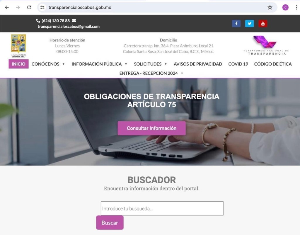Otro mecanismo de transparencia ha sido publicar por medios electrónicos la información de la Administración Pública Municipal, conforme lo establece la ley; aplicar las medidas que propone el Instituto de Transparencia y Acceso a la Información Pública del Estado de Baja California Sur, para garantizar a las y los particulares el acceso a la información pública, y proponer al Instituto de Transparencia y Acceso a la Información Pública del Estado de Baja California Sur aplicar de oficio, de conformidad con el artículo 13 de la ley en la materia, la información que debe considerarse como reservada.
