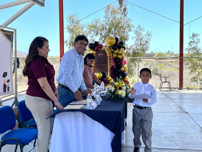 «Quiero felicitar a las y los padres de familia por no dejar solos a sus hijos, por apoyarlos siempre; hoy terminan su etapa de primaria, pero vienen una serie de situaciones en las que deben estar atentos al desarrollo de sus hijos, creemos que lo pueden lograr. Estaremos a la orden para apoyarles desde cualquier trinchera donde nos encontremos. Maestros, jóvenes, disfruten el periodo vacacional y estén listos con fuerza y rigor para iniciar la educación secundaria. ¡Felicidades a todos!», reiteró el alcalde de Los Cabos, Oscar Leggs Castro.