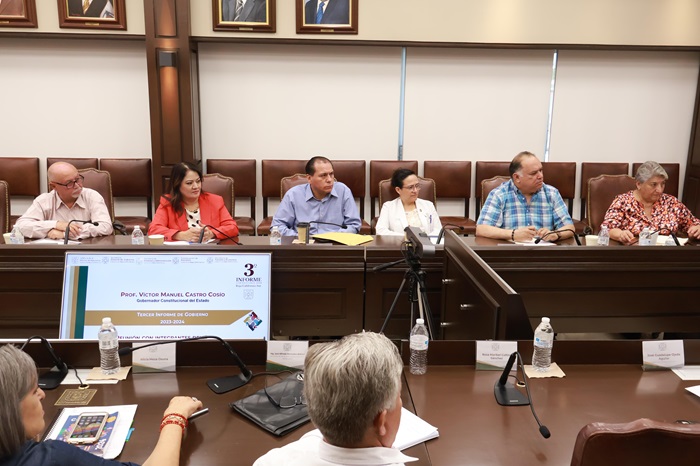 Con el propósito de evaluar avances en la integración de lo que será el III Informe de la presente administración y dar seguimiento a la conformación del documento que se dará a conocer a las y los sudcalifornianos el próximo mes de noviembre, el gobernador Víctor Manuel Castro Cosío encabezó reunión con integrantes de su gabinete.