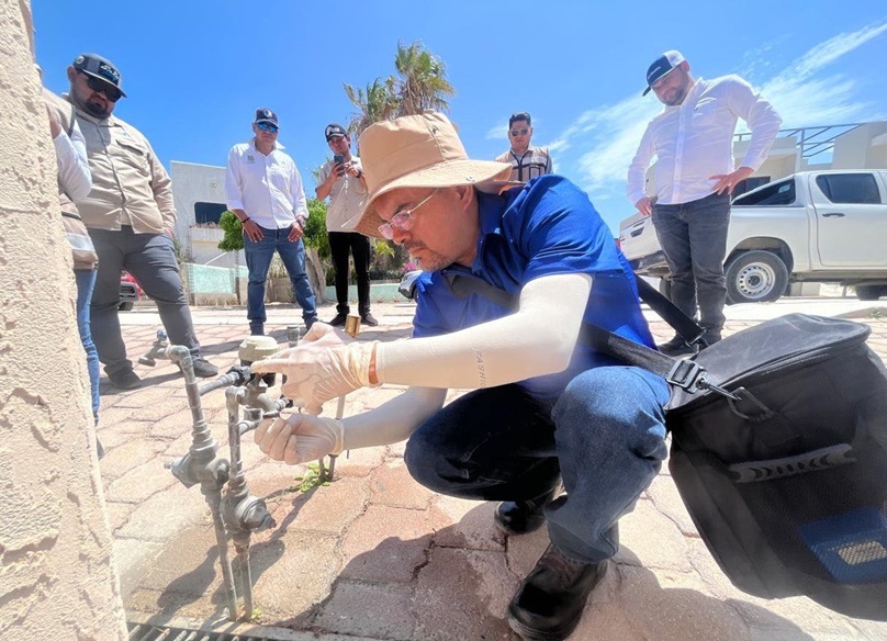 Al respecto, el encargado de Red de Agua en Cabo San Lucas, José Ojeda García explicó que esta actividad fue en conjunto con la empresa Aqualia, la supervisión externa y un laboratorio certificado para realizar muestreo y toma de muestras del agua que se abastece a los sectores pilotos, que se están considerando para llevar a cabo la implementación del proyecto MIG.