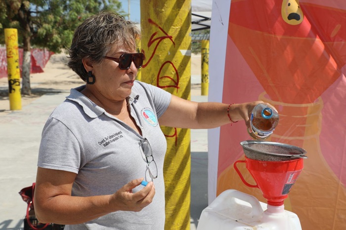 A fin de evitar que el aceite comestible usado se arroje a la alcantarilla y pueda ser reutilizado para la elaboración de jabones artesanales, habitantes de La Ribera, Santiago, Miraflores, San José del Cabo y Cabo San Lucas acudieron a los puntos de recolección que habilitó la Dirección de Cultura del Agua a depositar sus botellas sumando un total de 1 mil 500 litros de aceite hasta el momento.