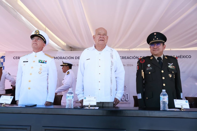 Durante la ceremonia, el Gobernador resaltó la importancia histórica y actual de la SEMAR, señalando que su labor no solo fortalece la seguridad y soberanía de México; sino que también protege a la población en situaciones de emergencia en el mar.