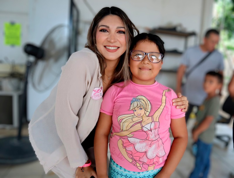 De manera personal, Sol Delgado Moreno proporcionó un par de lentes a la niña Jimena, vecina de la colonia Vista Hermosa, en San José del Cabo, a quien en días pasados le habían realizado el examen de la vista gratuito, posteriormente se elaboró la graduación indicada y hoy los recibió de manos de la presidenta honoraria del SMDIF Los Cabos.