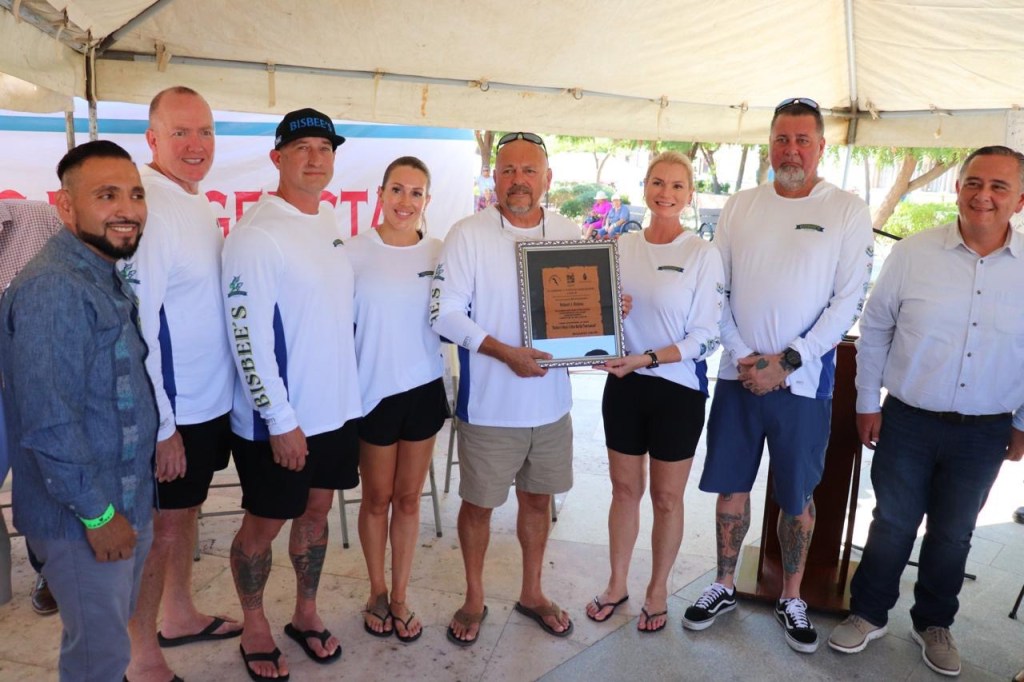 En el evento realizado en la plaza pública Amelia Wilkes Ceseña, el secretario general delegacional José Samuel Cisneros Peruyero, en representación del presidente municipal Christian Agúndez Gómez, así como el director general de Desarrollo Social Carlos Castro Ceseña y el promotor de pesca deportiva en Baja California Sur ClicerioMercado, hicieron entrega de un reconocimiento a la familia de Robert Joseph Bisbee por ser pionero de la pesca deportiva como parte de un legado al desarrollo económico y social de Cabo San Lucas.