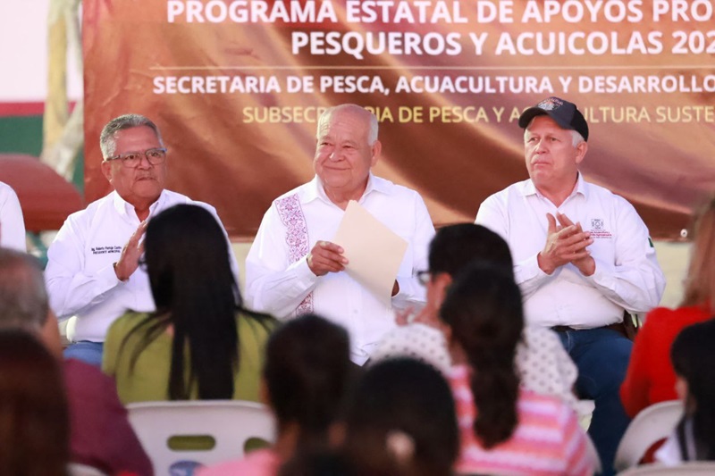 Esta es la tercera entrega, en este año, de apoyos a productores primarios de 15 cooperativas, 8 permisionarios y 5 uniones acuícolas de La Poza, Santo Domingo, María Auxiliadora, Puerto San Carlos, López Mateos y San Buto, para fortalecer la acuacultura, pesca deportiva, y pesca comercial, precisó Víctor Castro.