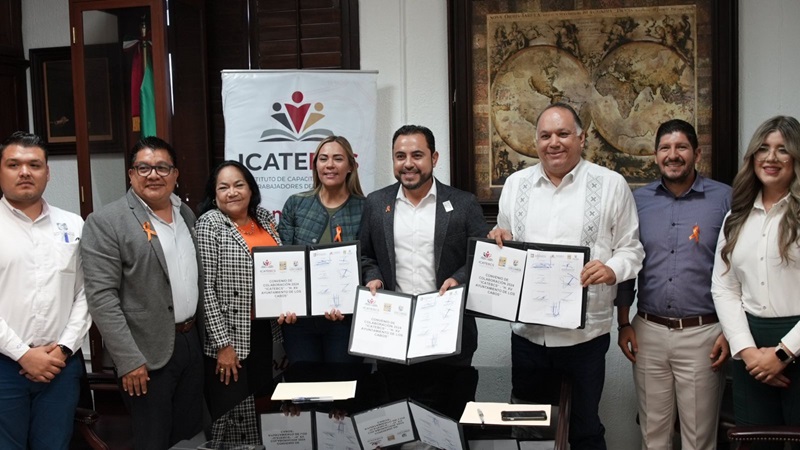 Este convenio fue firmado por el presidente municipal Christian Agúndez Gómez, y la directora general de Icatebcs, Cinthya Fátima Montufas Chávez, el cual establece bases para la capacitación, certificación y actualización del personal municipal, alineando habilidades laborales con estándares nacionales.