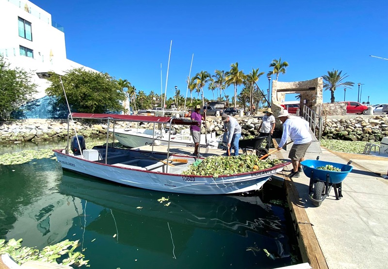 Ante la proliferación del lirio acuático en el Estero de San José del Cabo que ocasionó su desborde hacia el mar el pasado domingo primero de diciembre, personal del Fondo para la Protección de los Recursos Marinos (FONMAR) colaboró en los trabajos de ZOFEMAT, la Dirección Municipal de Pesca, Marina Puerto Los Cabos y cooperativas pesqueras para remover la planta de lirio en la zona de navegación.