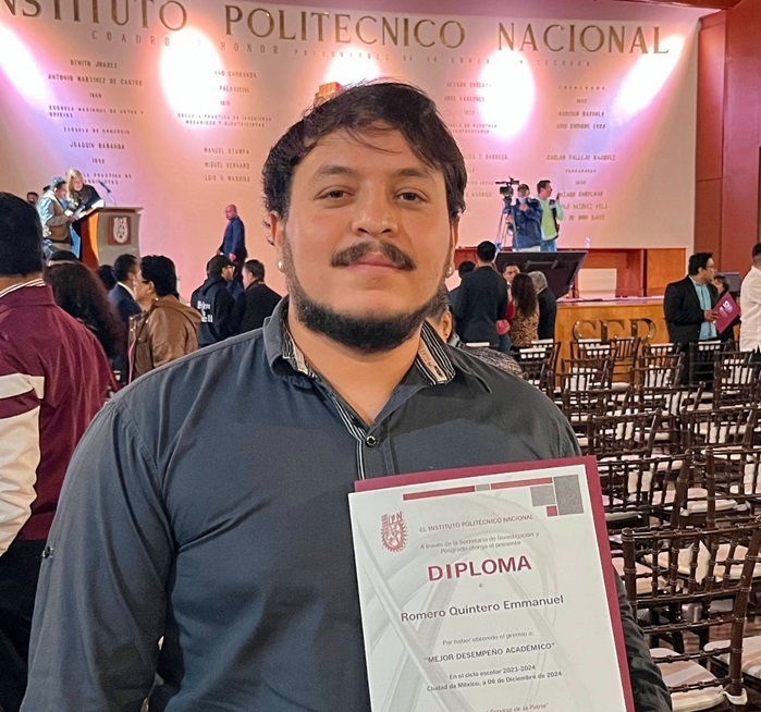 El Mtro. Emmanuel Romero Quintero, profesor del Departamento Académico de Sistemas Computacionales, fue distinguido con el prestigioso Premio al Mejor Desempeño Académico de Posgrado 2024, otorgado por el Instituto Politécnico Nacional (IPN), donde actualmente cursa su doctorado, adscrito al Centro Interdisciplinario de Ciencias Marinas.