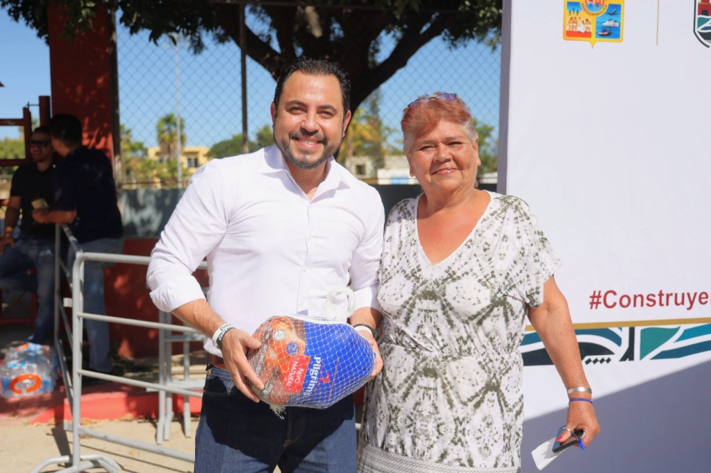 La mañana de este martes 17 de diciembre, el presidente municipal, Arq. Christian Agúndez Gómez, encabezó la entrega de pavos a los sectores prioritarios, como parte de las acciones sociales que realiza el XV Ayuntamiento de Los Cabos: ‘’Estamos en la unidad deportiva de San José del Cabo, entregando pavos para las familias de todas las comunidades ‘’, informó el primer edil.