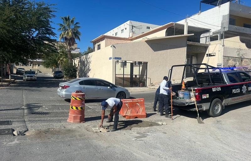 La Dirección General de Seguridad Pública, Policía Preventiva y Tránsito Municipal de Los Cabos, llevó a cabo la reparación de baches en la Delegación de Cabo San Lucas uno en la esquina de las calles Constituyentes y Zapotecas, y el otro entre las calles Acuario y Puerto de la Marina, esta restauración forma parte de las medidas implementadas para mejorar la circulación vehicular y garantizar la seguridad vial.