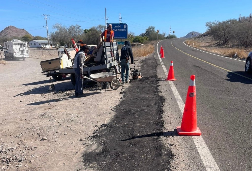 Mencionó además que, en la semana corriente, se estará también realizando bacheo para reparación de superficies de pavimento dañado, en un área aproximada de 16 kilómetros del tramo Loreto-Ciudad Insurgentes de la carretera transpeninsular (km20- km36).