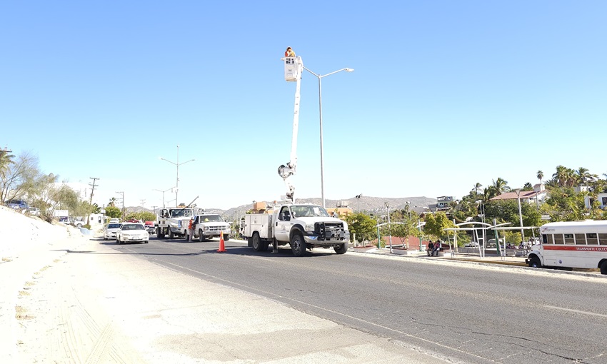 Con la finalidad de garantizar un municipio seguro y funcional para todas y todos, la Dirección General de Servicios Públicos, encabezada por Manuel Ernesto Montaño Castro, a través de la Dirección Municipal de Operación y Mantenimiento que dirige Ismael Marrón Sandez, llevó a cabo una extensa jornada de rehabilitación del alumbrado público este sábado 18 de enero, en un tramo de la carretera Transpeninsular, frente a la colonia 5 de Febrero.