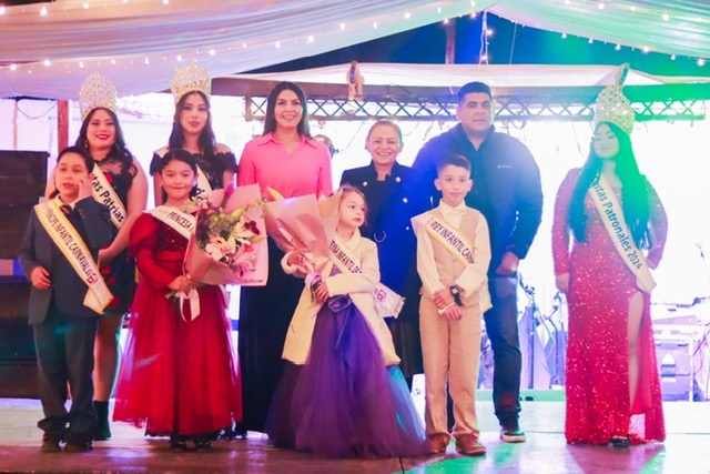 - La alcaldesa Paz Ochoa Amador, acompañada de su esposo Ramses Usarraga Castro y la regidora Anaí Romero, colocaron la banda a los reyes y reinas electos