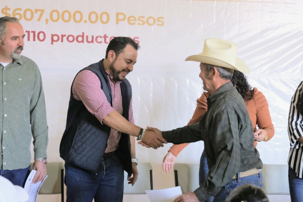 Durante la jornada, se distribuyeron apoyos alimentarios para el ganado, materiales para la construcción de corrales, así como bombas para el abastecimiento de agua. Este paquete de asistencia busca aliviar las dificultades que enfrentan las personas productoras y rancheras debido a la falta de lluvias, fortaleciendo las condiciones de vida de quienes dependen de la actividad ganadera para su sustento.