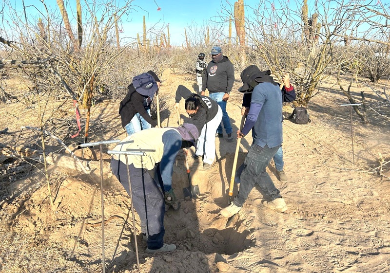 Asimismo, personal de la CEBPBCS y de la Comisión Nacional de Búsqueda (CNB) se encuentra presente, por lo que se prevé la realización de una próxima jornada conjunta con familiares para ampliar el radio en el sitio en mención, brindando seguridad perimetral por parte de la Secretaría de la Defensa Nacional y Guardia Nacional.