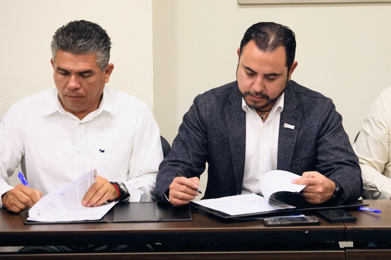 Durante esta firma de convenio, Agúndez Gómez estuvo acompañado por la síndica Nélida Alfaro Rosas; el secretario general, Alberto Rentería Santana; el director general de Desarrollo Urbano, Roberto Flores Rivera y el director general de Desarrollo Social, Carlos Castro Ceseña