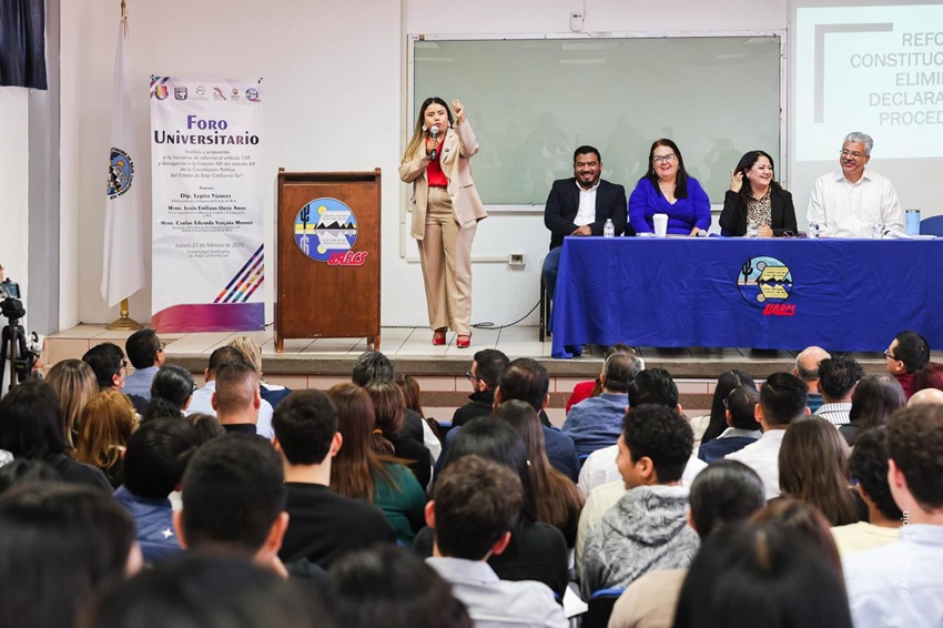 A invitación de la Facultad de Derecho del Universidad Autónoma de Baja California Sur, y auspiciada por la materia de Derecho Comparado, se presentó el Foro Universitario denominado “Análisis y Propuestas a la Iniciativa de Reforma al Artículo 159 y Derogación a la Fracción XIX del Articulo 64 de la Constitución Política del Estado de Baja California Sur” que en sí plantea la Eliminación del Fuero Constitucional en BCS.