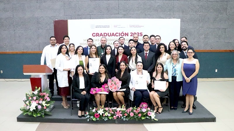 A través de los convenios académicos que el Gobierno de Baja California Sur, a través de la Secretaría de Salud, tiene establecidos con la Universidad Nacional Autónoma de México (UNAM), los hospitales estatales siguen contribuyendo con la formación de médicas y médicos especialistas que atiendan las enfermedades que más afectan a las y los mexicanos, sostuvo la secretaria de Salud, Ana Luisa Guluarte Castro al encabezar la graduación de 32 residentes del Hospital Juan María de Salvatierra.